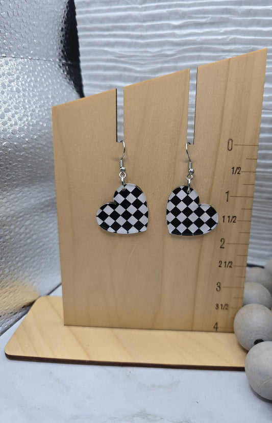 Checkered Heart Earrings