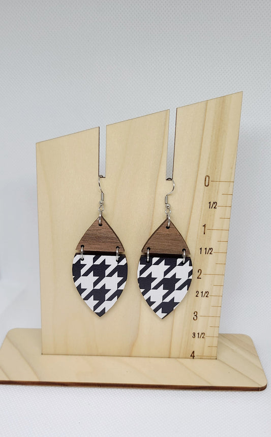 Walnut And Houndstooth Split Petal Earrings