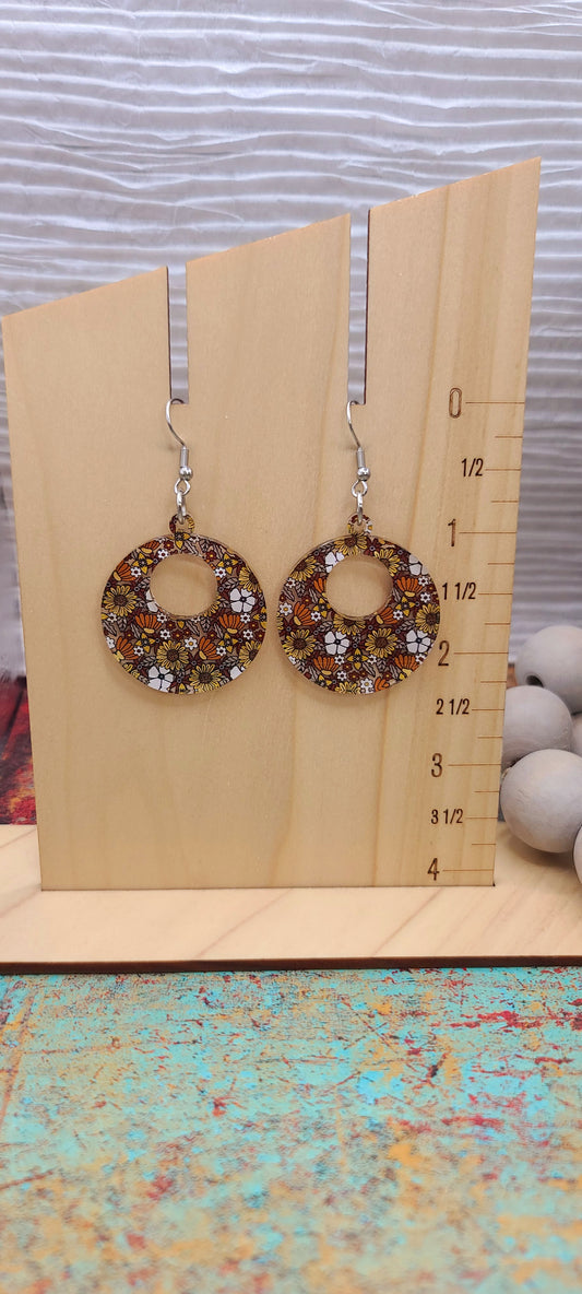 Retro Floral Circle Earrings