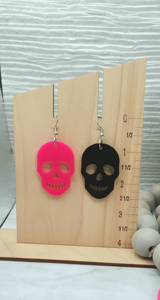 Mismatch Skull Earrings Pink/Black