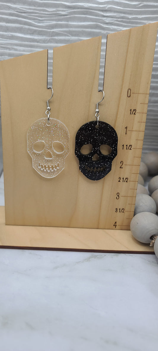Mismatch Glitter Skull Earrings Clear/Black