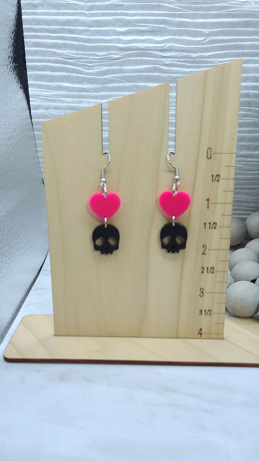 Heart Skull Earrings Hot Pink/Black