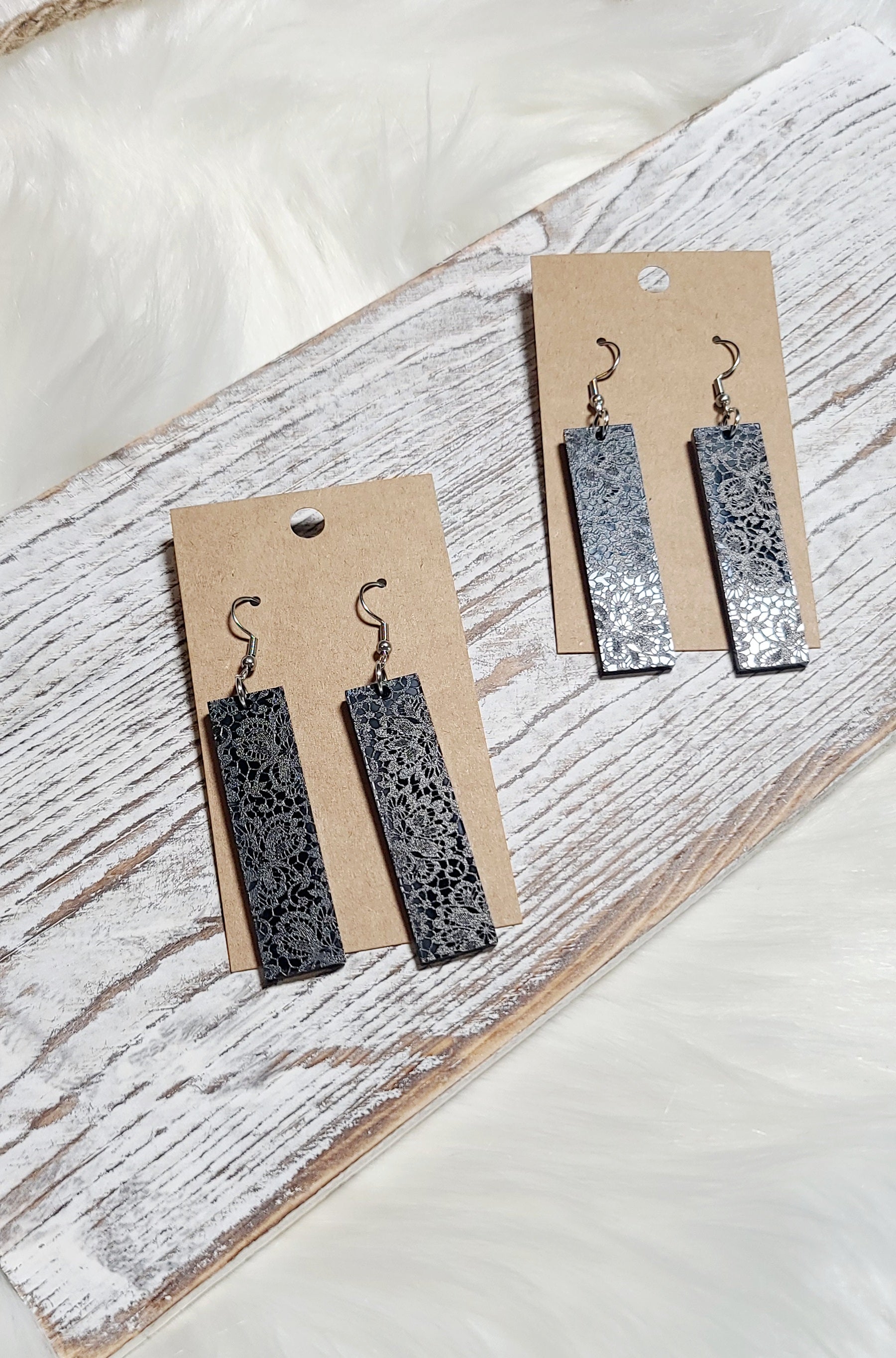 These sophisticated black lace rectangle bar earrings are crafted with quality acrylic material. A timeless design, they feature an elegant lace pattern to provide an eye-catching look to any ensemble. Durable and lightweight, these earrings make a perfect addition to your everyday wardrobe. Recommended for ages 14+.