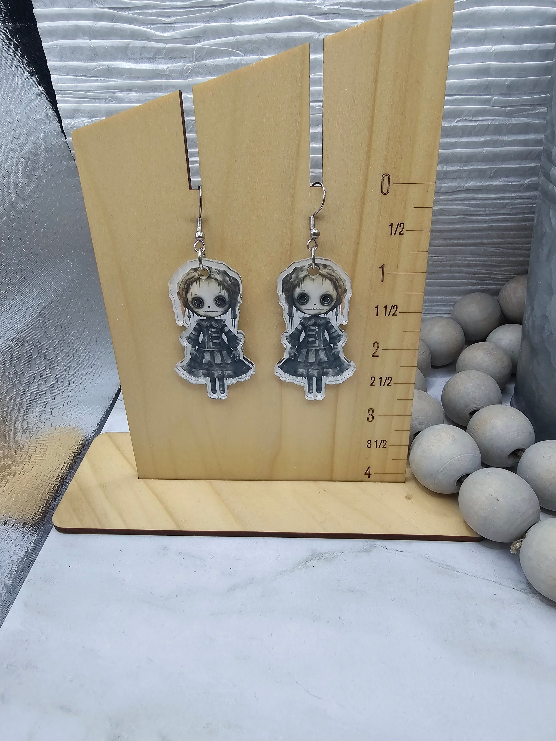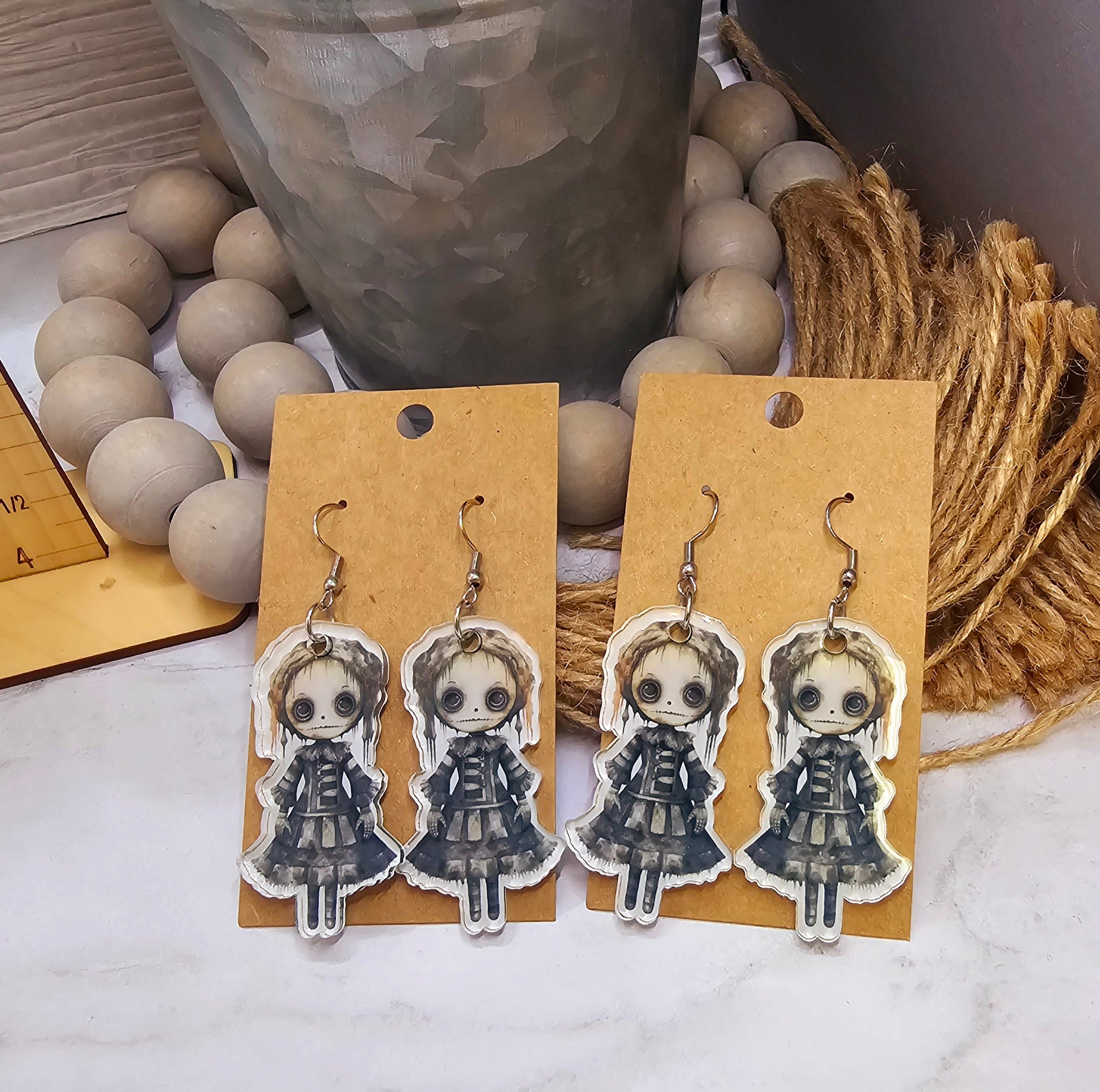 Get ready to scare with these spooky acrylic earrings. Featuring a hand-placed image, each pair is unique. Channel your inner spooky with these entrancing earrings that are sure to turn heads. Perfect for any day.
