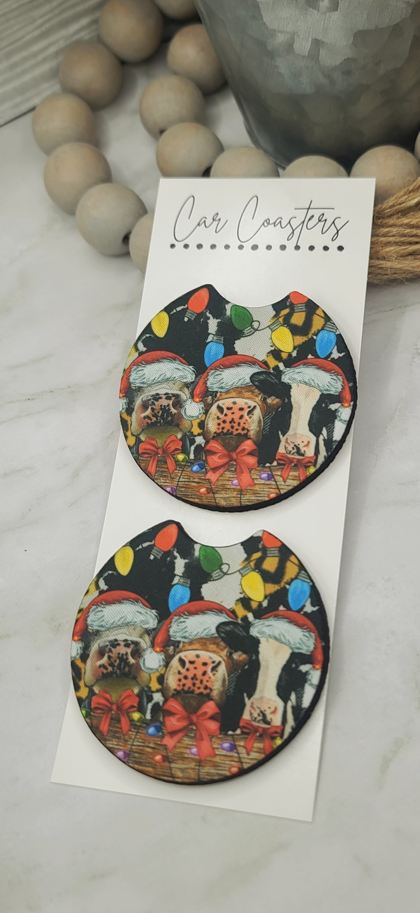 Add some Christmas cheer to your car with our delightful Christmas Cows Car Coasters! Made of neoprene, these festive coasters are sure to bring a smile to everyone’s face. Enjoy the joy of the holiday season—whenever you’re in your car! Recommended for ages 14+. Approximately 2.75 inches round. Set of 2.
