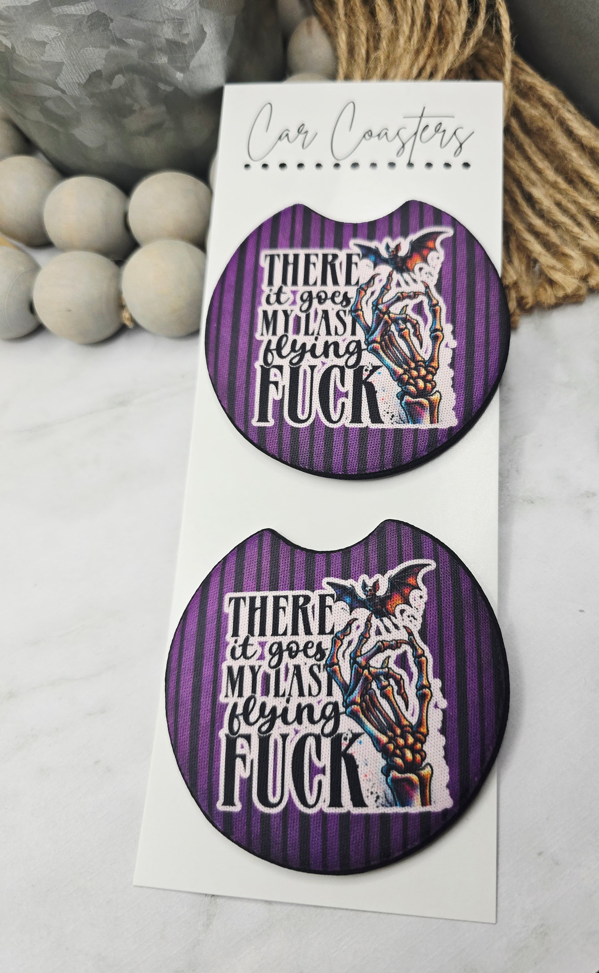 Introducing our Last Flying F*ck Car Coasters, the perfect addition to any road trip. Made with durable neoprene material, these sarcastic coasters will protect your car from spills while adding a touch of humor to your cup holders. A must-have for any sarcastic driver. Recommended for ages 14+