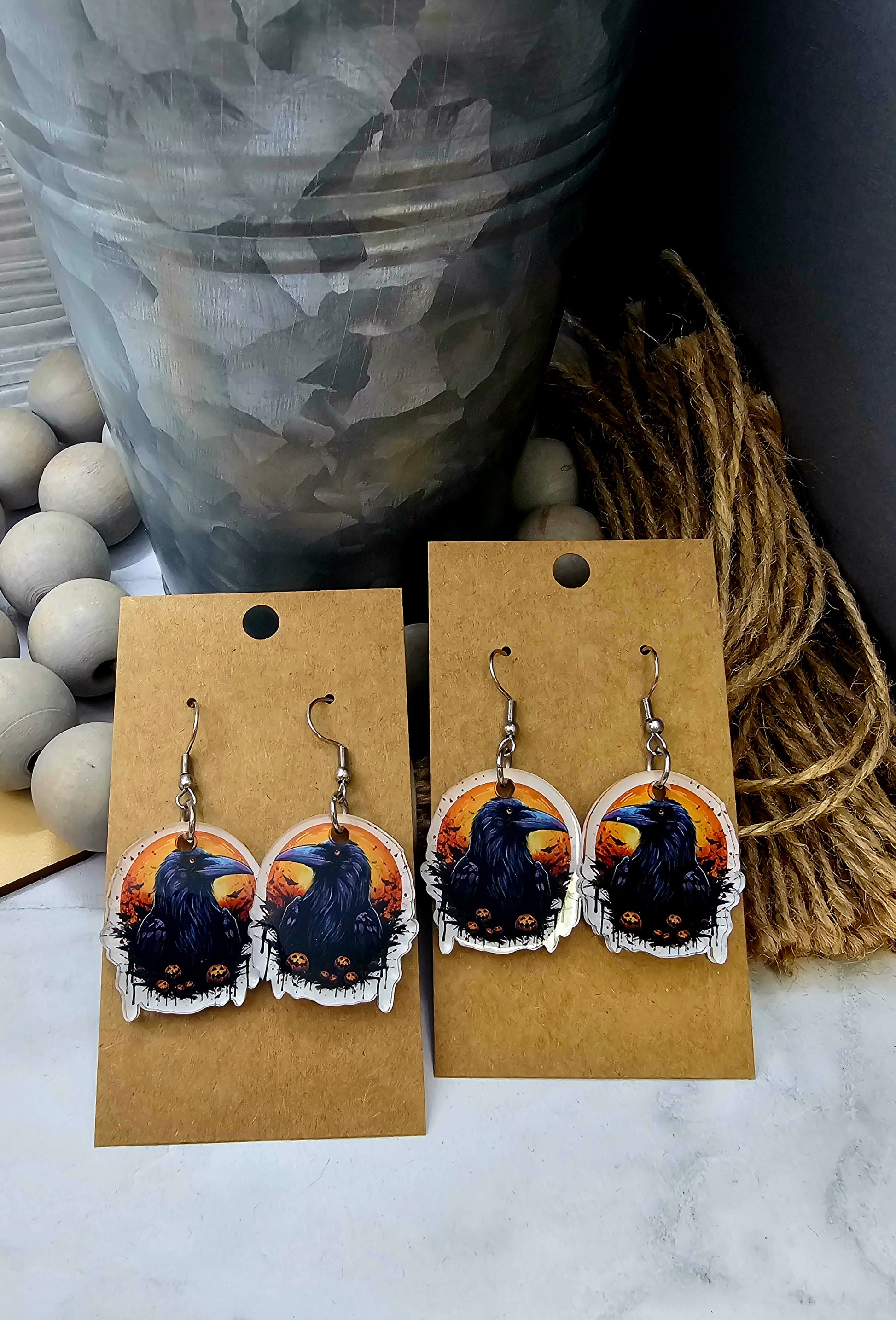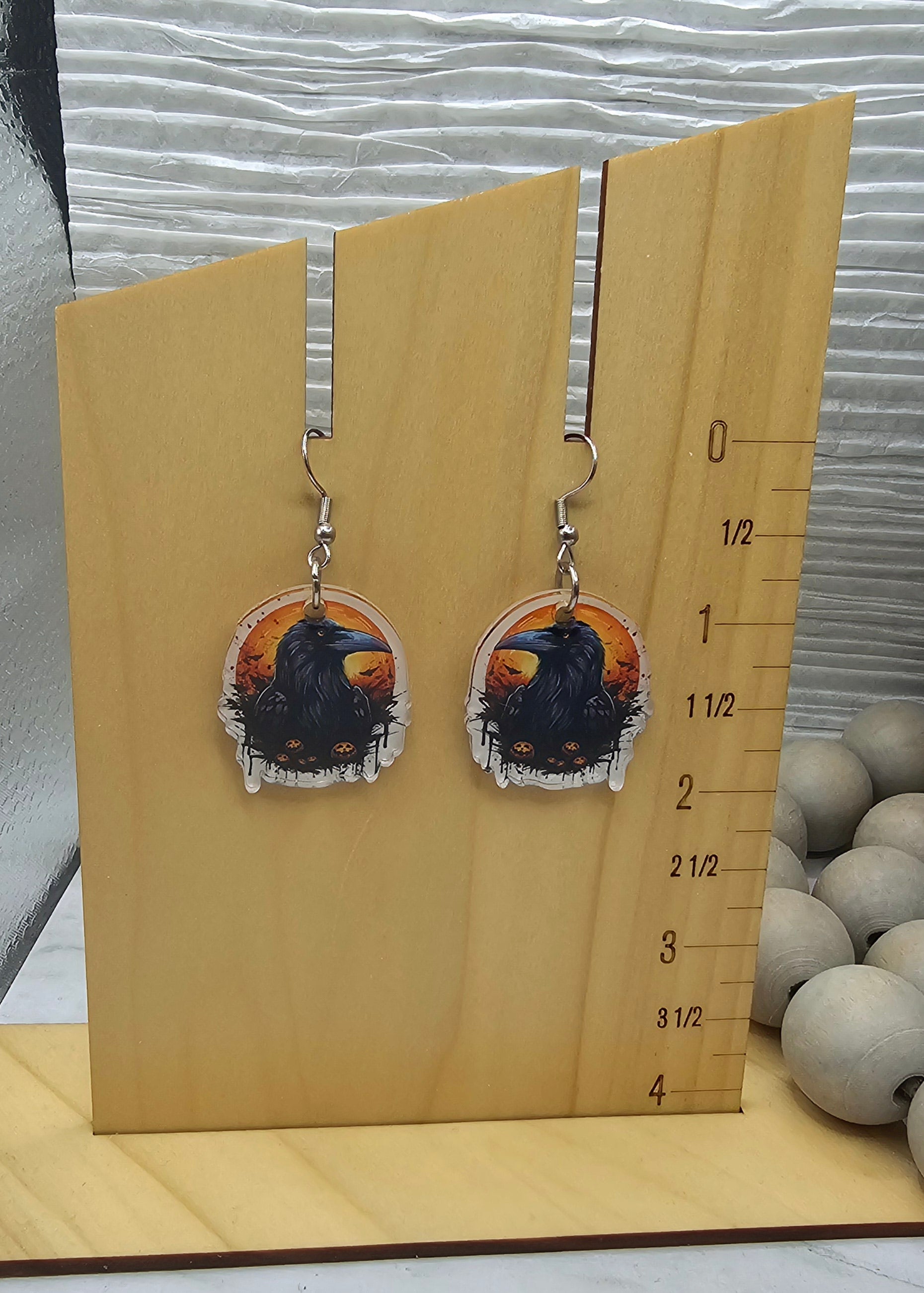 Get ready to scare with these spooky acrylic earrings. Featuring a hand-placed image, each pair is unique. Channel your inner spooky with these entrancing earrings that are sure to turn heads. Perfect for any day.